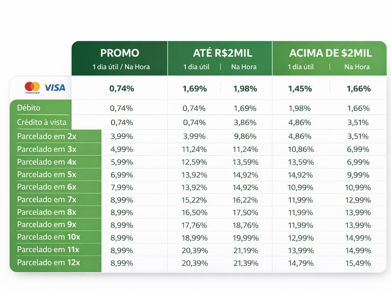 A menor taxa de antecipação do mercado para vendas em até 12x.